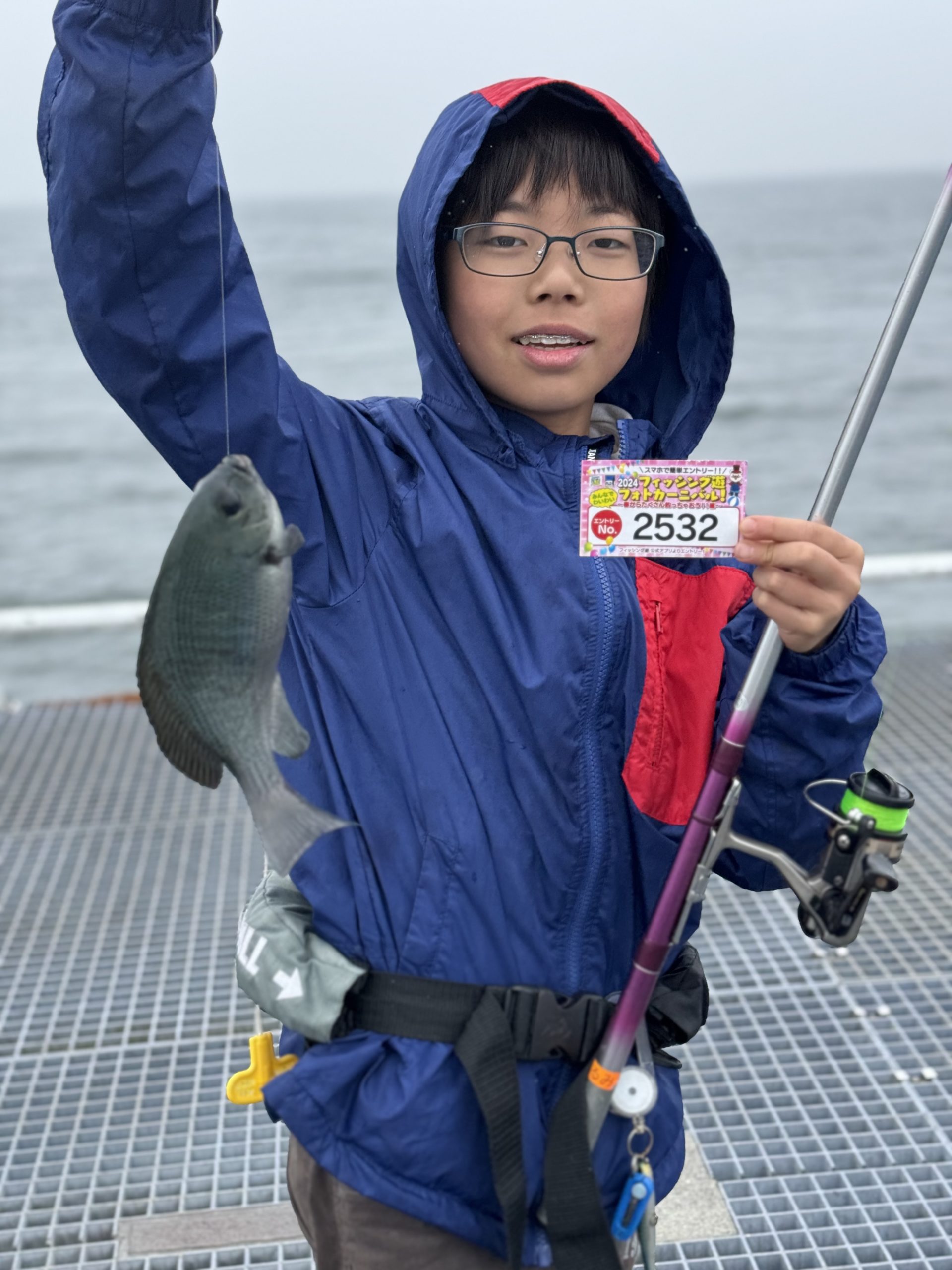 グレを釣り上げたとき嬉しそうでした。