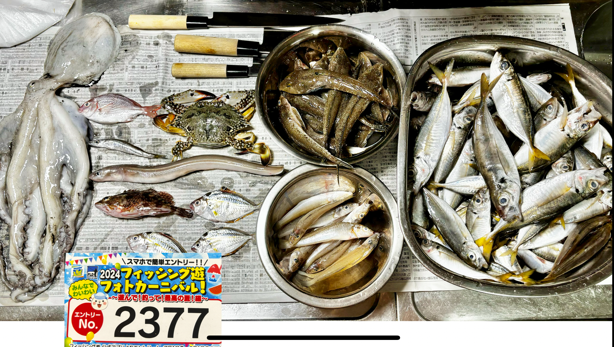 アジ145キス12メゴチ35フグ5タコ1カサゴ1カマス2タイ1ゼンメ5カニ1アナゴ1ウミヘビ1