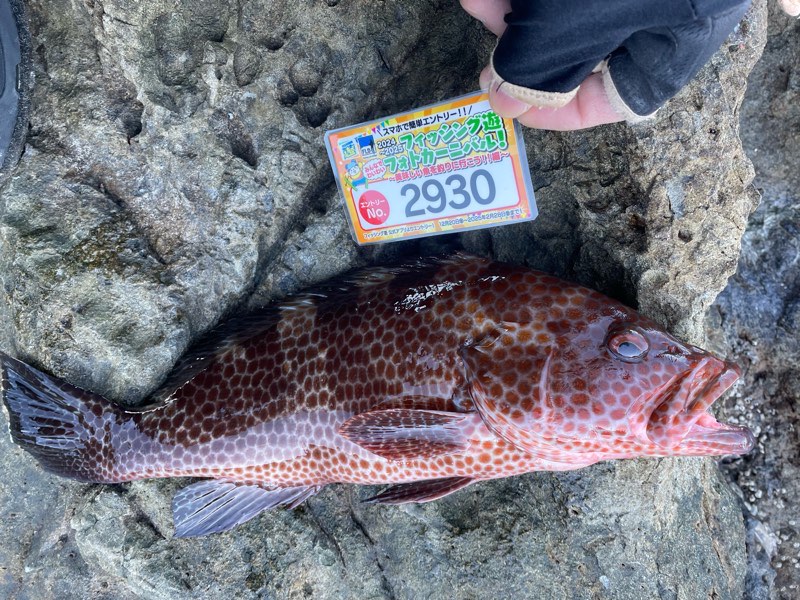 自作ウキにて磯フカセ 磯際に入れて良型オオモンハタ