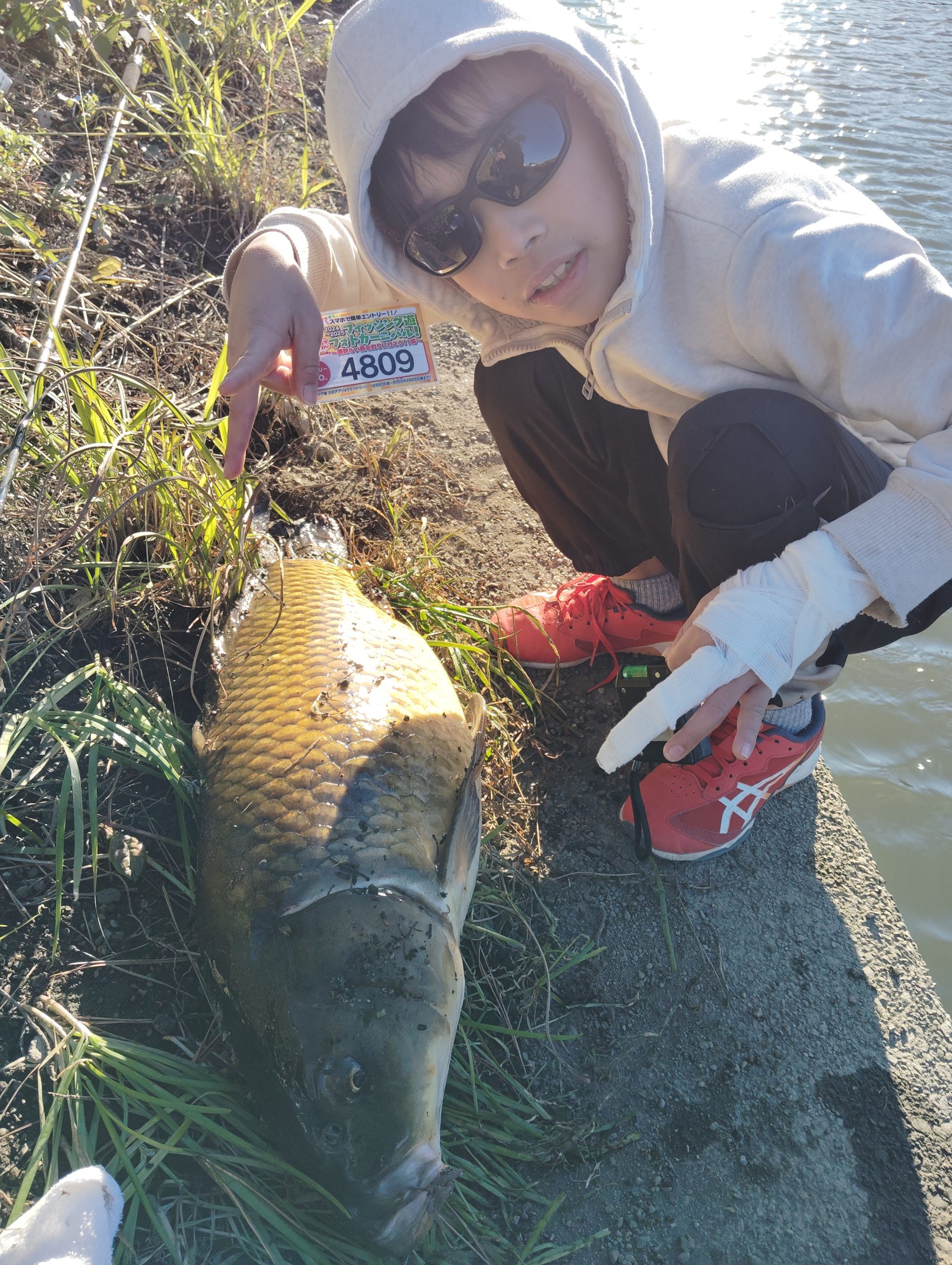 シーバスロッドをクリスマスプレゼントで買ってもらって、さっそく釣りへ(^o^)おっきな鯉に大興奮