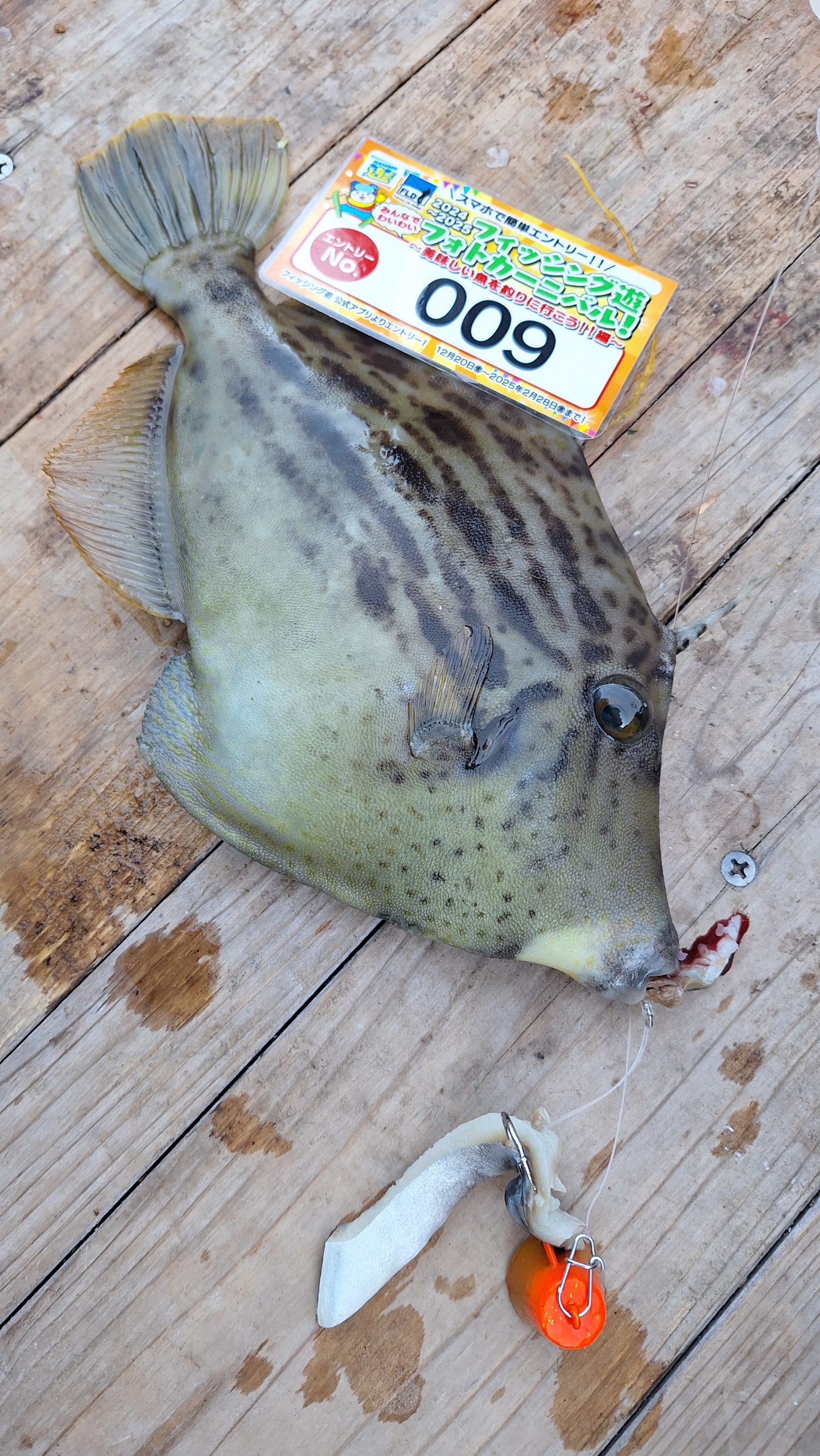 ロックフィッシュのポイントでテンヤにサバの切り身を付けて。嬉しいゲストでした。