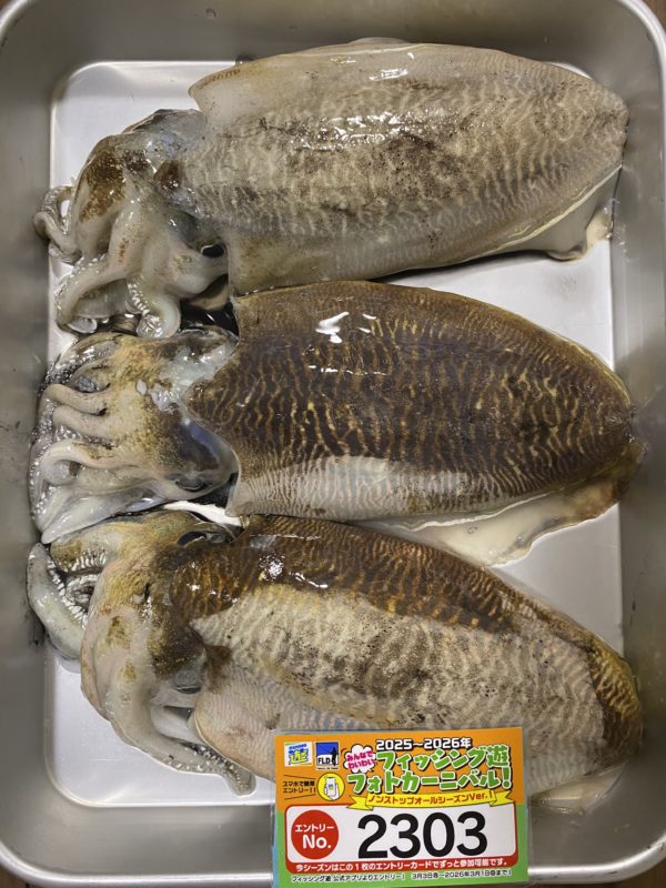 船長に教えてもらってコウイカ釣り初体験。1時間半で5杯GET。我が家は、3杯お土産。