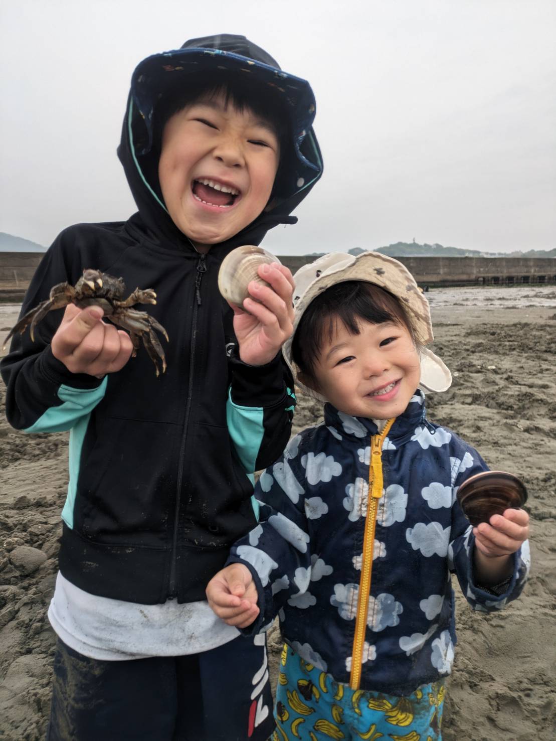 大きいはまぐりも蟹も捕まえれて楽しかったです