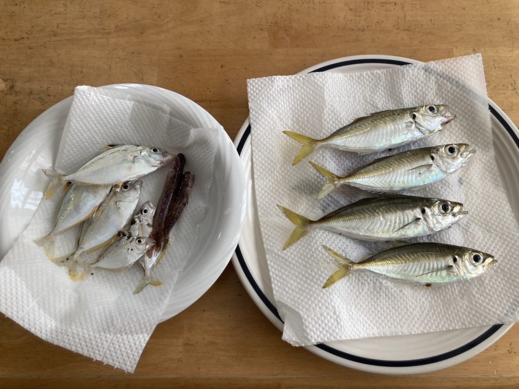 釣った魚:あじ、ハゼ、ひいらぎ、ネンブツダイ