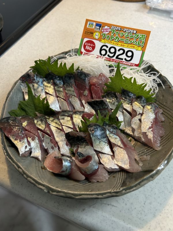 イカメタルの外道で釣れたサバの刺身(自己責任)|エントリーNo:6929