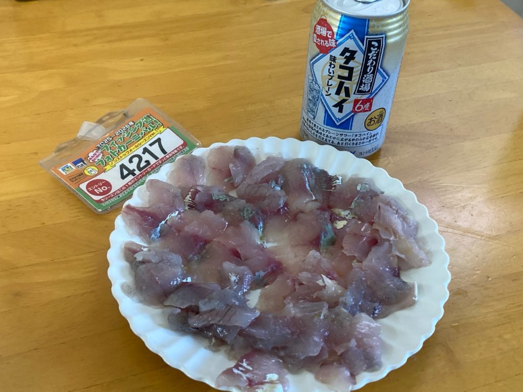 7/6にフィッシング遊で買ったFサーディン20gでショゴ5匹釣れ刺身にしてもらいました。感謝します。