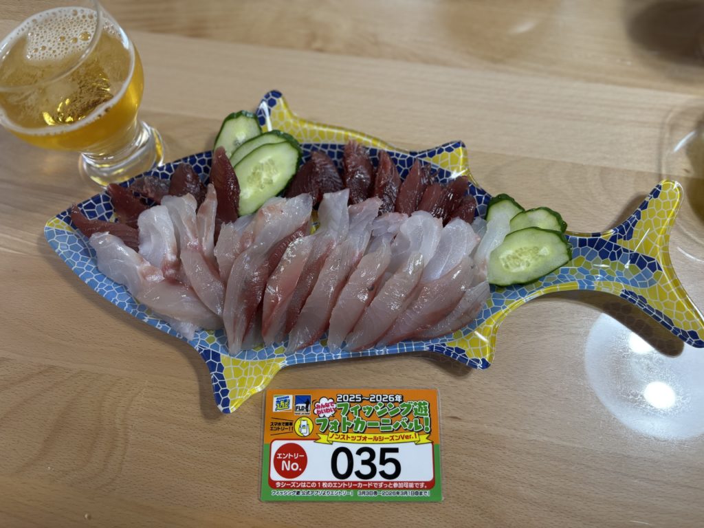 色んな魚が釣れて刺身盛合せ美味しかったです。